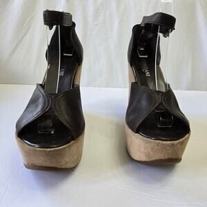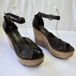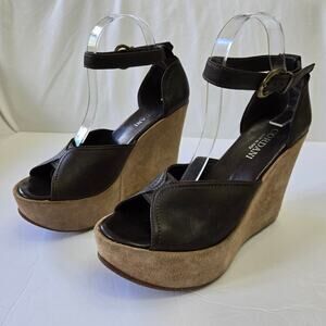 Cordani Made in Italy Platform Wedge Sandals Brown Leather & Suede Heel Size 9