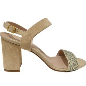 Cordani Nealey beige Suede Leather block heel ankle strap sandals pumps 40