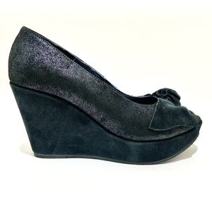 Cordani Roselyn Metallic Navy Blue Leather Platform Shoes Suede Wedge Pumps