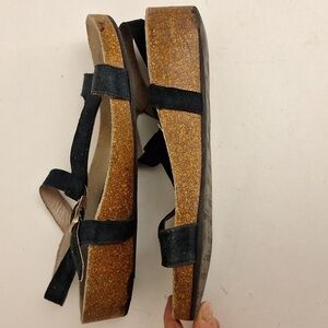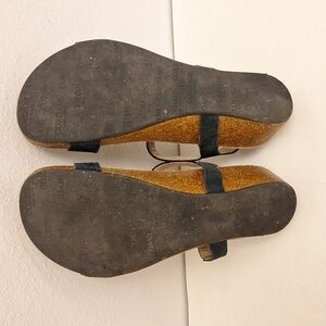 Cordani Black Strappy Suede Leather Chunky Platform Wedge Thong Sandals Size 8.5