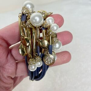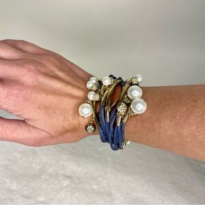 Corded Bracelet Multi Strand Faux Pearls Clear Crystal New Unbranded Gold Tone