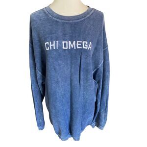 Corded Crew Slate Blue Chi Omega Corduroy-Style Sweatshirt – Size Large