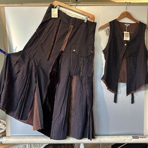Matching vest in size med one snap closure at chest to match pocket on skirt tie on back at waist