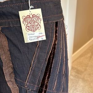 Cordelia blue jean mixed media maxi skirt size large bustled in back pleated….