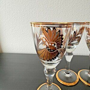Cordial Sherry Wine Glasses Artesania Tabuisa Peru 14K Gold Magic Bird Set of 4
