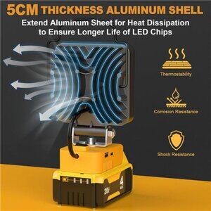 🧿⚙️ROTATABLE & CHARGING - The cordless outdoor lights has 140° rotatable design. It can adapt to different work scenarios and lighting needs in different directions. It also has a USB-A & USB-C charging port, which can be used as a power bank to charge your mobile phone, headsets, tablets, speakers or other devices while working. It's a great led work light option for dewalt 20v battery tool bag or box.