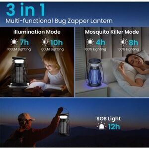 3 in 1 UV Fly Zapper: In addition to killing insects with 2 adjustable UV lights, our Insect zapper can also function as an LED light and a flashing SOS light in emergencies. The LED light has 2 brightness levels