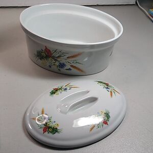 Cordon Blue Floral Ceramic Casserole Dish with Lid Cottagecore Grandmacore