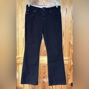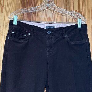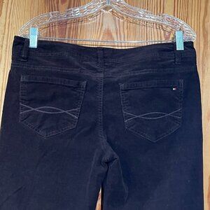 Elevate your casual style with these chic Tommy Hilfiger flared brushed corduroy pants. A perfect addition to your fall and winter wardrobe, these pants feature a flat front, button and zipper closure, and a comfortable mid-rise fit. The chocolate brown color is gorgeous. Crafted from a blend of spandex and cotton, these pants offer both comfort and flexibility, making them ideal for everyday wear.