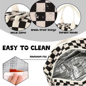 Stylish checkered lunchbox in black and white. Perfect for everyday use.