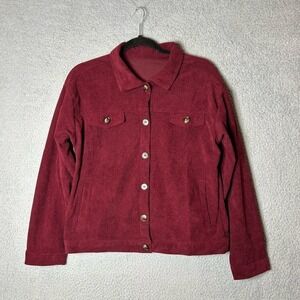 Corduroy Jacket Womens S Red Rust Collared Long Sleeve Button Up Corduroy NEW