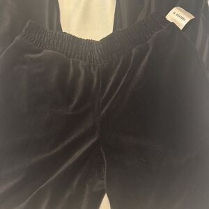 This is new with tags. The color is black. The fabric content is 96 % polyester, 4 % spandex. The leg opening is 20 inches measured around. These are stretch waist and the fit is high waist wide leg. These are lightweight and comfy. The waist is 30 inches, stretches to about 40 inches. The length from top to bottom is 43 inches. The inseam is 34 inches. The fabric is very plush corduroy.