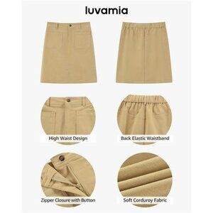 Vintage meets modern with this womens skirts to stay stylish all day long. Featuring high waist design, no lining, belt loops, zipper closure with button, back elastic waistband and 2 front patch pockets to adds both functionality and style