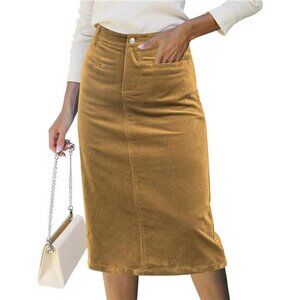 Corduroy Skirts for Women Midi Length Trendy Khaki