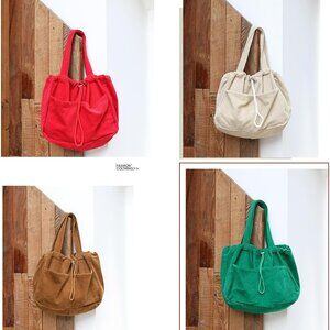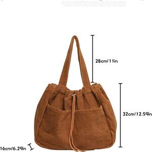 Corduroy Tote Bag Women Large Capacity Office Drawstring Shoulder Bag