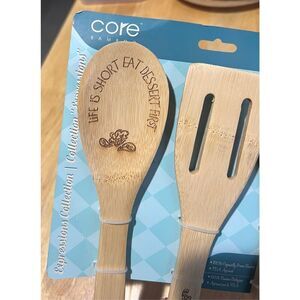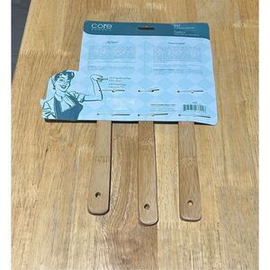 Core bamboo kitchen utensils. Includes 3. NEW but does have black mark stop on the package. Does not affect actual product. See photos.