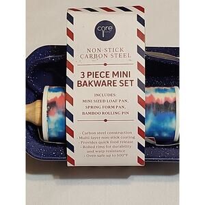 Core Kitchen 3 pc Mini Bakeware Set Loaf Pan Spring Form Pan Bamboo Rolling Pin