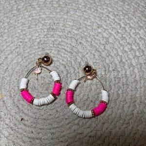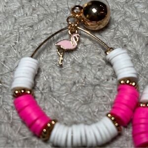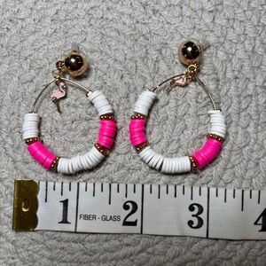 Core New York Pink and White Hoop Earrings Flamingo 1.5” diameter