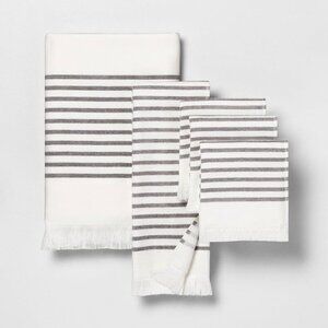 Tags: bath towel, hearth and hand, railroad gray, fringe towel, striped cotton, discontinued