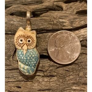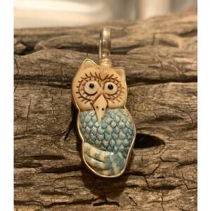 Amazing piece of art!!! Coreen Cordova owl multi color charm/pendant. Owl is hand carved with intricate detail and hand painted with beautiful colors and triple dipped silver setting. Pendant measures 1.75 inches tall and .66 inches wide. Great to add to one of her charm bracelets, necklaces or wear alone. Either way its truly of piece of art with no detail left undone.