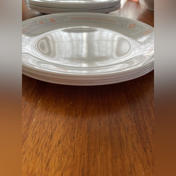 Corelle by Corning Apricot Grove. 4 salad plates. Used some chips in 1 plate; refer to pic.
