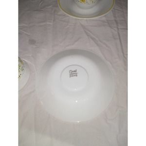 Set of 4 Corelle April print yellow flowered mugs and saucers.