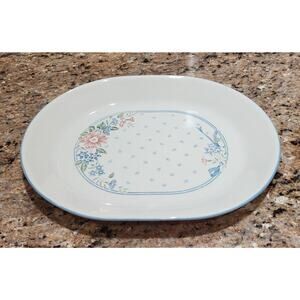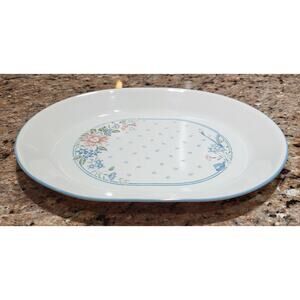 Corelle Blue Symphony 12 1/4" x 10" Platter Blue Stripe Peach Flower