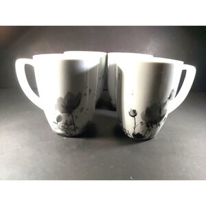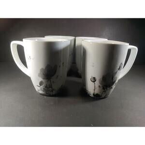 Corelle Coordinates Porcelain Coffee Cup Mug Lot Of 4 White Gray Flowers