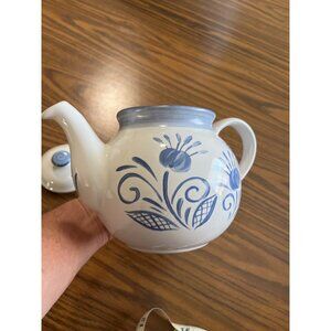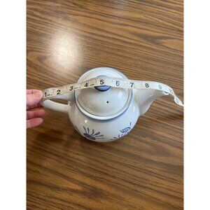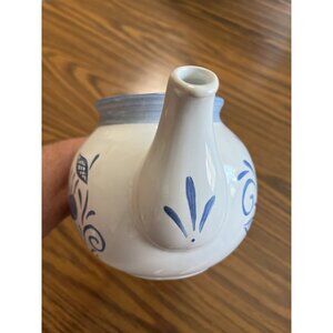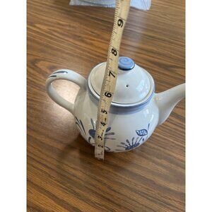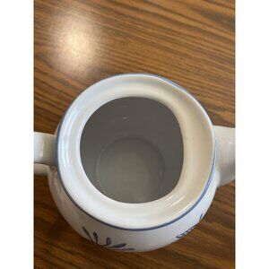 Corelle Coordinates stoneware white blue ceramic pitcher. No stovetop or broiler. Has blue painted flowers. Good pre-owned condition. No chips or cracks.