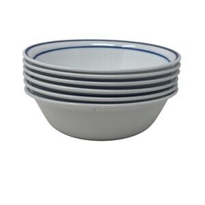 Corelle Country Hearts Blue Rim Soup Cereal Bowls 6.25" Set of 6 Vintage USA