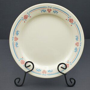 Corelle Embroidery Salad, Bread & Butter, Dessert, Appetizer Plates - Set of 4. Very pretty vintage pattern featuring reddish pink and blue flowers and bands. 7.25" rimmed plates in excellent pre-owned condition. Also listed are dinner plates, soup/cereal bowls and mugs in this pattern. (Please check in with me before bundling due to weight.)