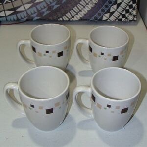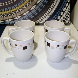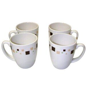 Corelle Geometric Stoneware Mug Set of 4 White Brown Green Squares