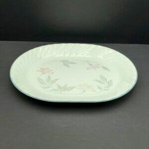 Corelle "Pink Trio" Platter. Excellent pre-owned condition. 10" x 12". Very pretty discontinued pattern featuring pastel flowers and a white swirl rim.