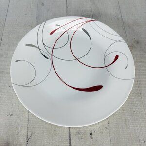 Corelle SPLENDOR Break Chip Resistant Red Gray Scrolls Rim Dinner Plates Set 6
