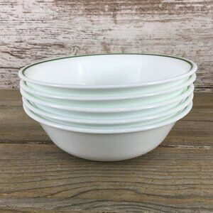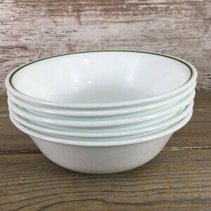 Corelle Set Of 5 White Soup/Cereal Bowls with Dark Green Band 6 1/4"
