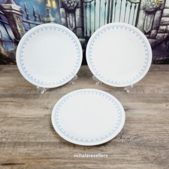Corelle Snowflake Blue 8.5" Salad Plates Lot of 3 Corning Vintage