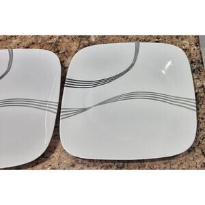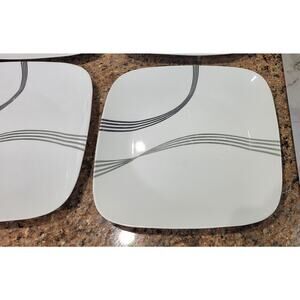 Corelle Urban Arc 10.5" Square White Dinner Plates Set of 5 Gray/Black Stripes