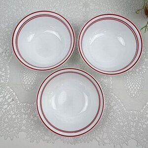 Corelle Vitrelle 3 Classic Cafe Red Coupe Cereal Soup Bowls White Red Band Edge