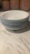 Set of white bowls with a subtle blue rim. 7 are white with blue rim, 1 is winter frost white (no blue rim) total of 8, listing is for all 8. Great condition, no chips or cracks. Made in USA, microwave and dishwasher safe. Measure 7.25” diameter and 1.75” tall.