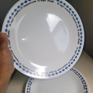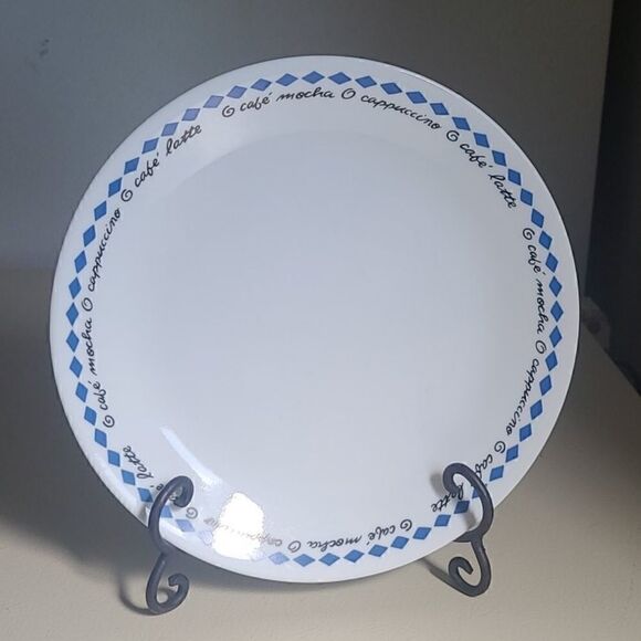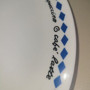 4 pcs corelle with blue diamonds & with black words print cafe'mocha, Cappuccino, cafe'latte.