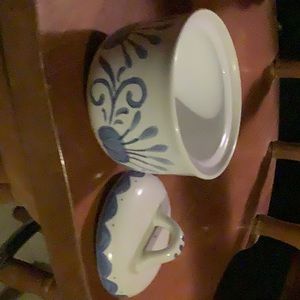 Blue Dutch pattern on covered pot about 3 inches tall