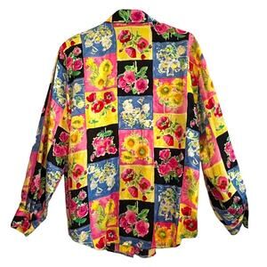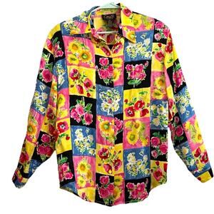 Corey B 80s Silk Floral Patchwork Button Front Long Sleeve Blouse size 8