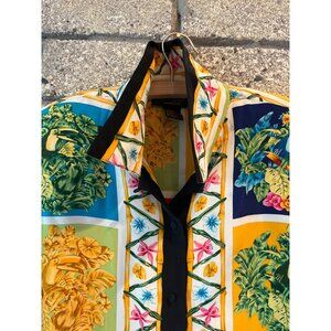 Corey B. New York 100% Silk Multicolor Floral Block Print Button-Up Shirt Womens