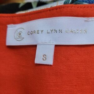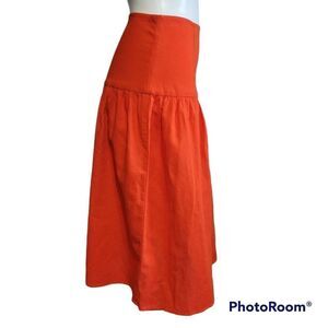 Corey Lynn Calter 100% linen bright poppy red side zip skirt 7" thick waistband band 28" waist 28" long in excellent condition