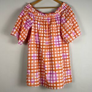 Corey Lynn Calter Anthro Mary Off Shoulder Ruffle Dress Plaid Print Sz MP NEW