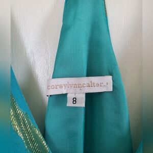 Corey Lynn Calter Anthropologie 100% Silk Gold Turquoise Y2K USA Dress, Size 8