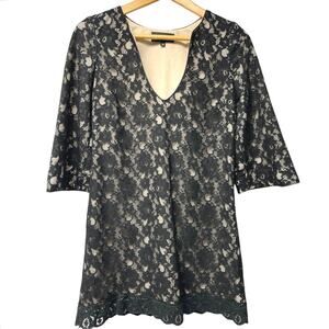 Corey Lynn Calter Black Floral Lace Overlay Mini Sheath 3/4 Sleeve Dress Size 4