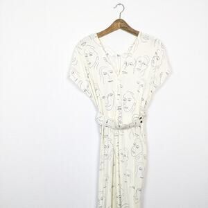 Corey Lynn Calter Black & White Visage Graphic Sheath Dress. An unexpected print – like the monochromatic visage motif on this dress – is sure to turn heads, wherever you wear it. With experience gained in opera houses, Broadway shows and New York’s punk scene, Corey Lynn Calter’s eponymous line is defined by original prints, flattering cuts, and punchy hues that are inspired by her vast and varied background. V-neck, elasticized waist, pullover styling, back button detail. 97% Viscose, 3% Spandex.