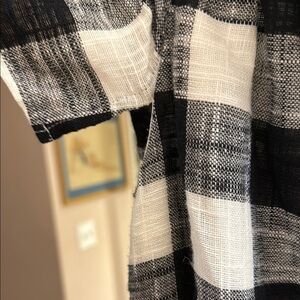 Chic off-shoulder dress with a black and white plaid pattern. Perfect for casual outings. Cotton blend with pockets