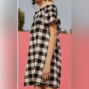 Corey Lynn Calter Black and White Gingham Off-Shoulder Dress